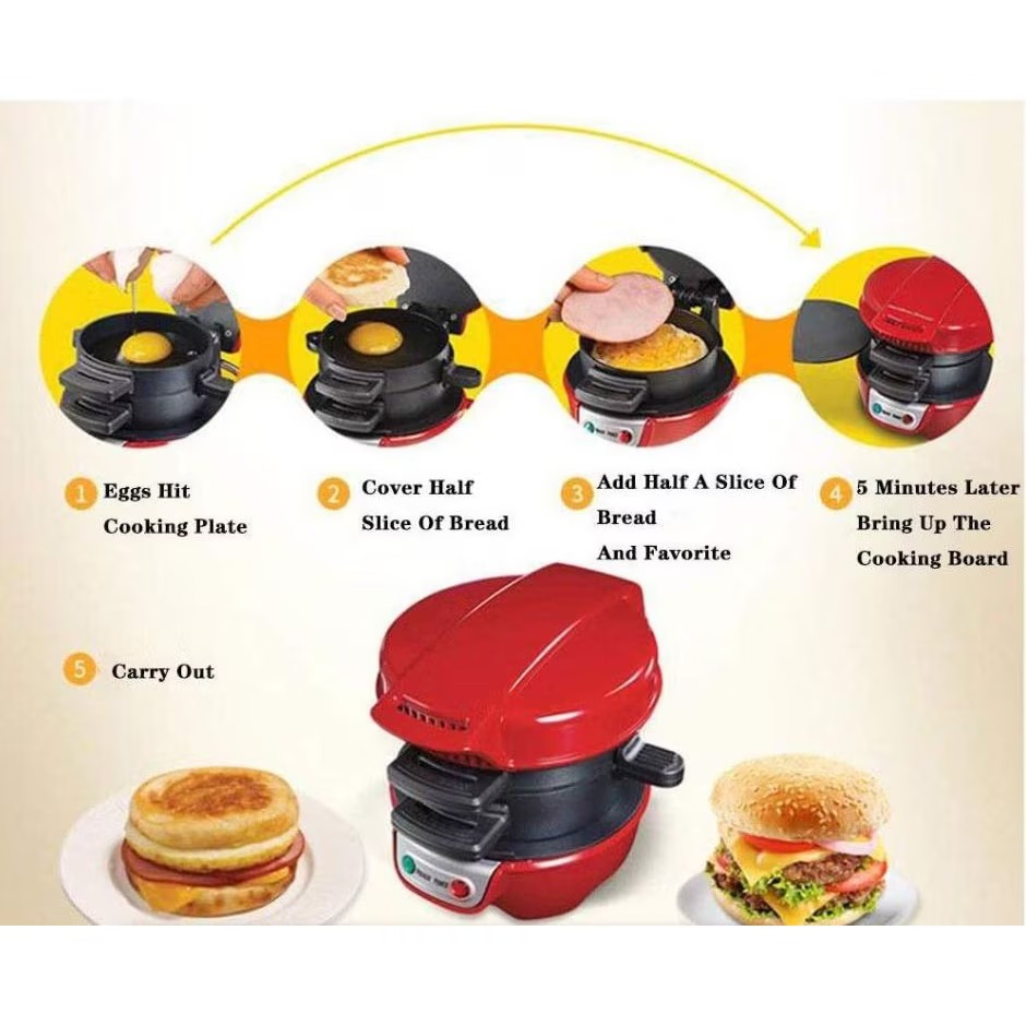 - 【Burger Maker Machine】— Experience the ultimate convenience in your kitchen with our all-in-one quick-cooking device! Watch as it effortlessly assembles a delicious breakfast burger in minutes.