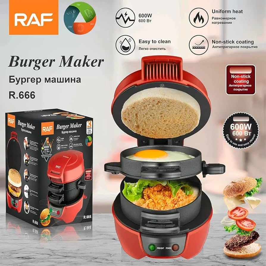 RAF Burger Maker, Breakfast Sandwich Maker with Egg Cooker Ring, Waffle Maker Machine Multicooker-600 Watt